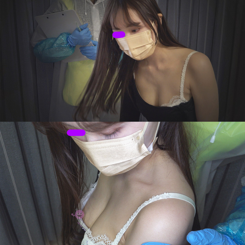 [ワクチン接種]意外と巨乳なスレンダーお姉さん[胸チラ]