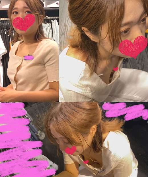 【個撮胸チラ②】《えちパイの洋服屋の店員さん》半ば迷惑な客にも笑顔で対応してくれて裾直しで乳首まで見えました。